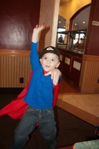 Our nephew Trevor displayed some Superhero moves with his cape on.