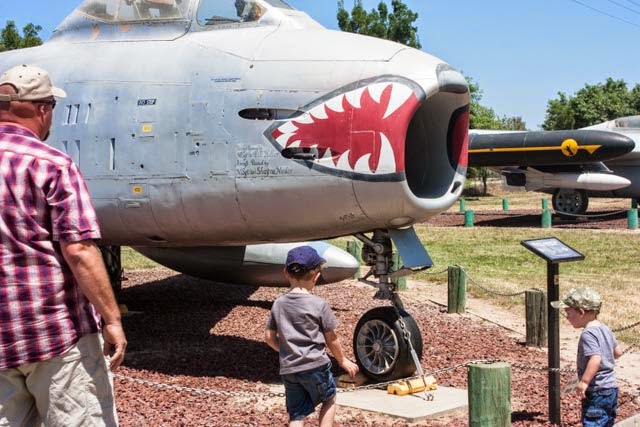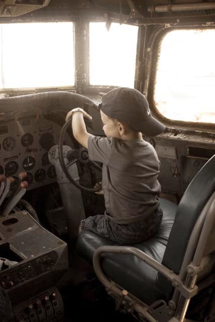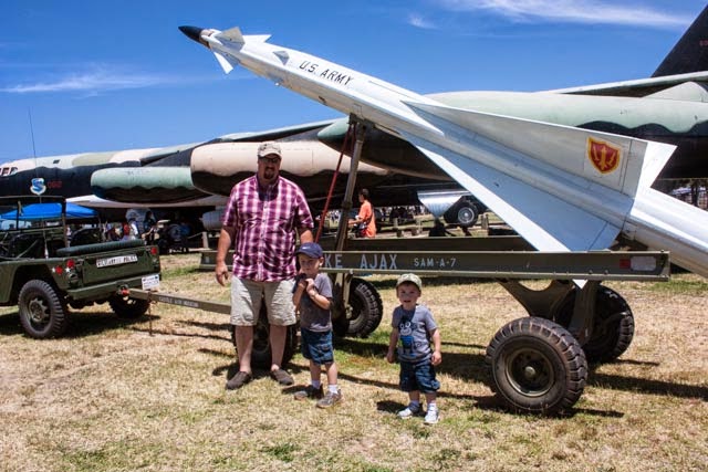 The holiday weekend afforded us a trip to visit with my parents in Turlock. We had not been down in awhile and decided at the last minute (that being Friday) that we would head south. While down in the warm and toasty Central Valley, we took a drive 20 minutes south to the old Castle Air Force Base in Atwater. The base is the home of the Castle Air Museum. Like many little boys, airplanes are super cool. The museum was holding their “Cockpit Day” which affords all who visit the chance to step into many of the nearly 60 restored planes on display. And who doesn’t love a museum that lets you touch things? This is important when you have kids.