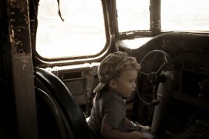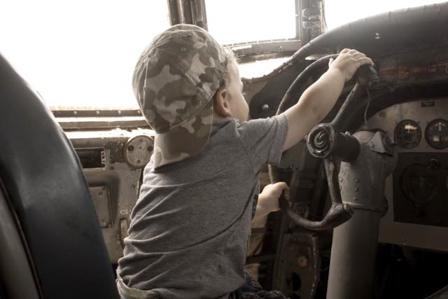 These boys were serious about getting behind the wheel of this plane. They had to turn their caps around!